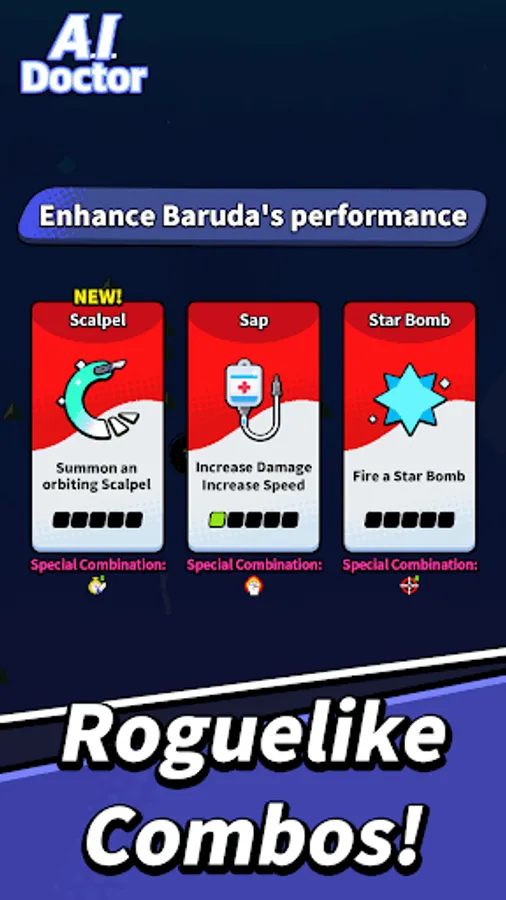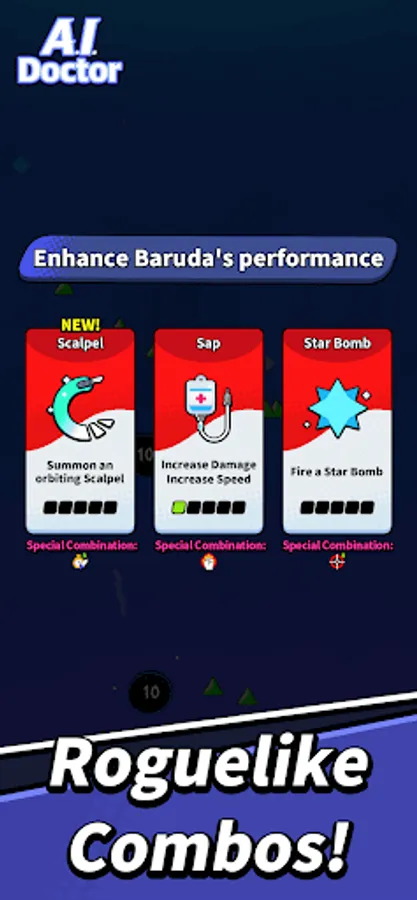 Upgrade Baruda to become the world's strongest physician by equipping and combining various equipment!