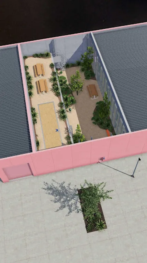 The Pink Building only has one entrance: a tiny door that gives access to a small oasis with lots of greenery, natural light and colorful details. You imagine yourself being on a total different planet; shut off from the outside world with jungle sounds coming from every corner.