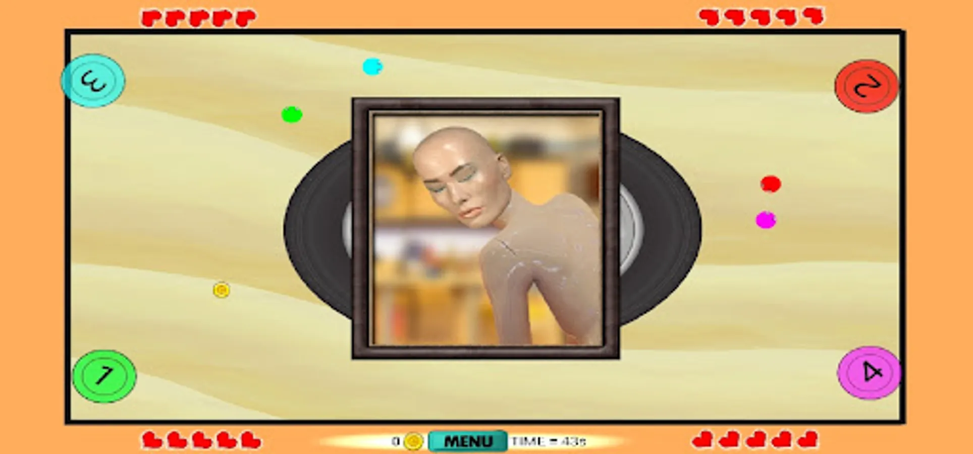 ❸ Red light stop!: To win the player must go 5 laps around the picture with the doll that sings red light, if it marks a red light and the player who moves loses 1 heart.