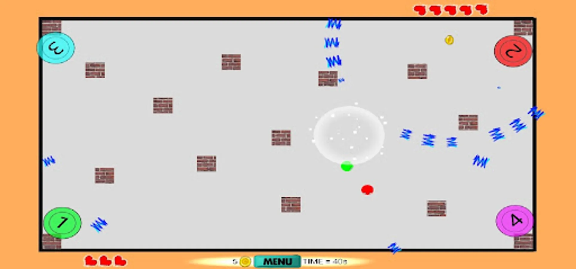 ❷ Pass the Bomb: Player who has the bomb must pass it to another enemy before it explodes because the explosion of the bomb removes 1 heart.