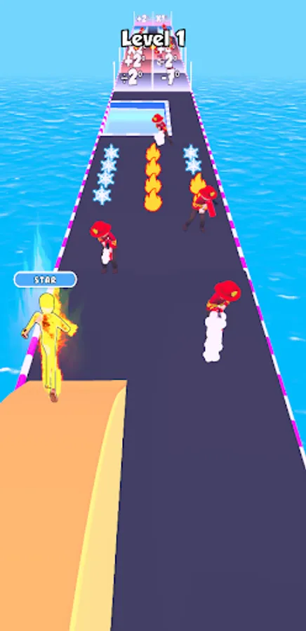 At the end of the level, jump on a spring and leap into the sky. The bigger your fireball, the bigger sun you become.