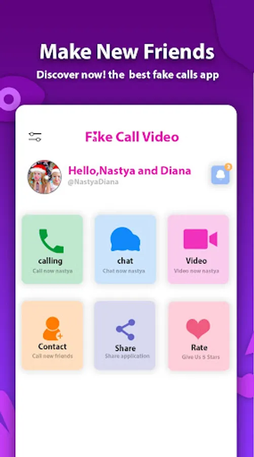You can use this amazing app to make call and show your friends that call you and make fun of them saying see " Nastya and Diana Fake Call".