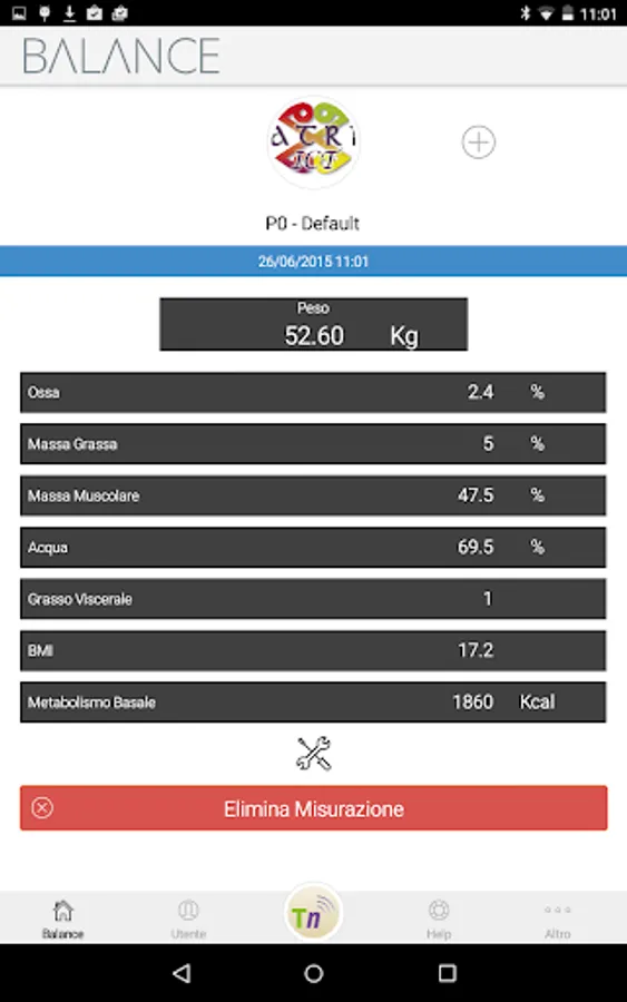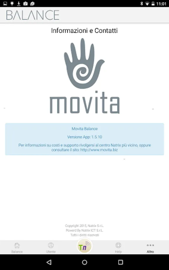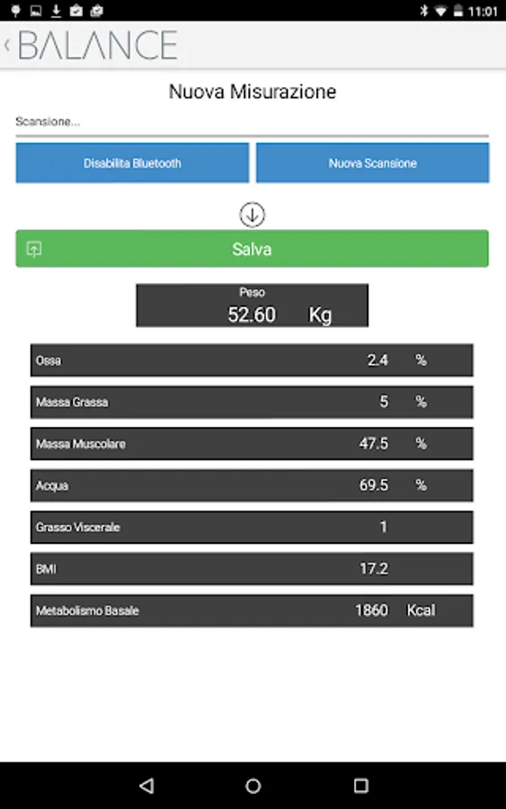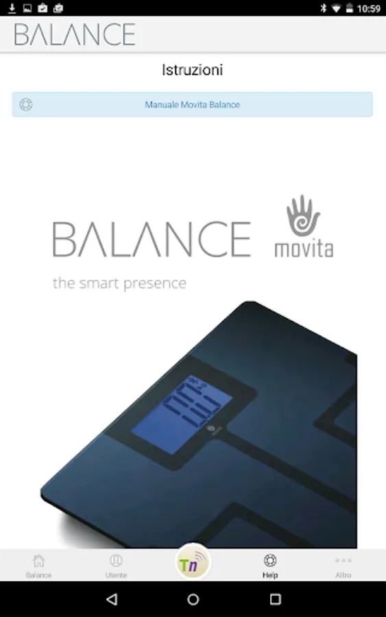 Movita impedenzometrica Balance is a scale that measures weight, lean mass, fat mass, percentage liquids, percentage muscle, percentage bone, visceral percentage, BMI and BMR.