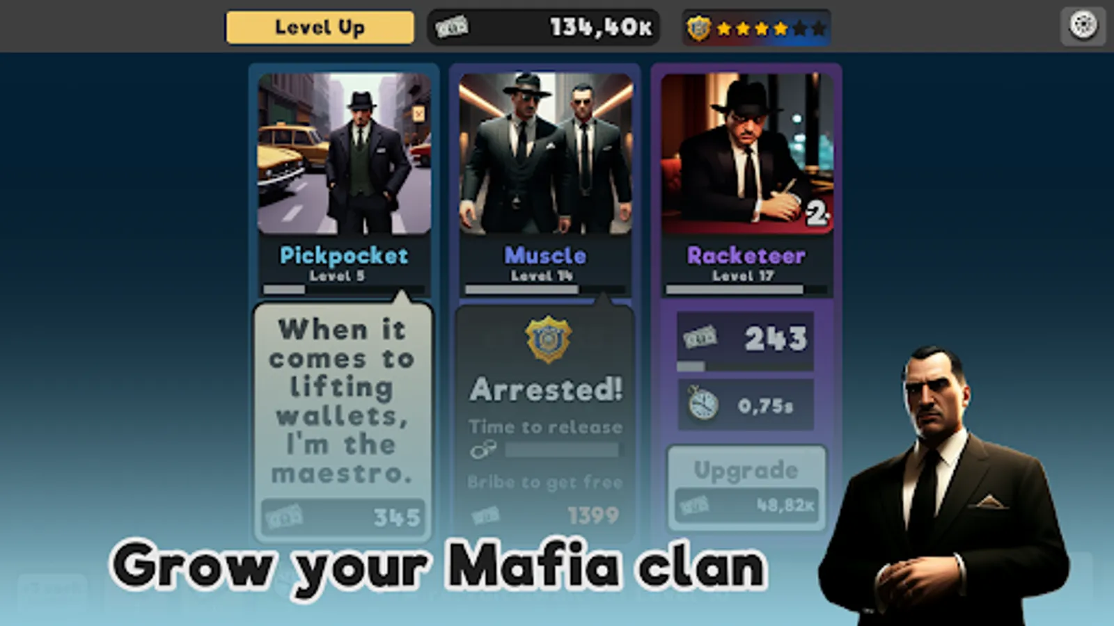 In this entertaining idle game, you'll build your criminal empire, one operation at a time. As your influence grows, so will your territory - from ruling the streets to controlling the entire city. The mafia lifestyle has never been so accessible and fun.