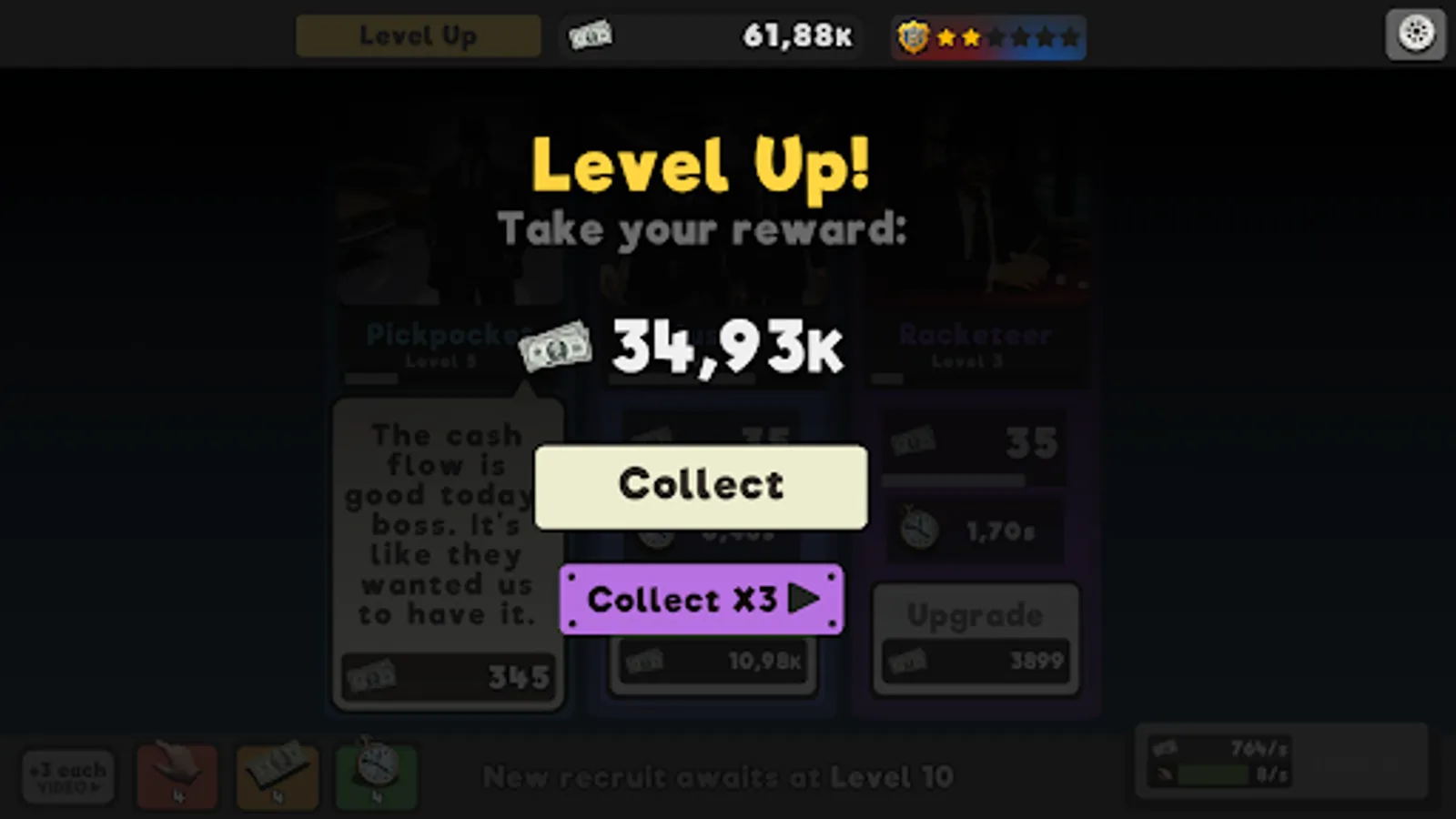 Heat Mechanic: As you grew your empire more, and collect combo, the police will start looking for you, They will arrest your recruits from time to time.