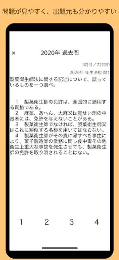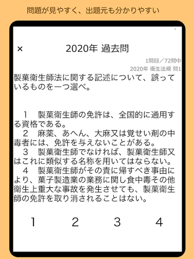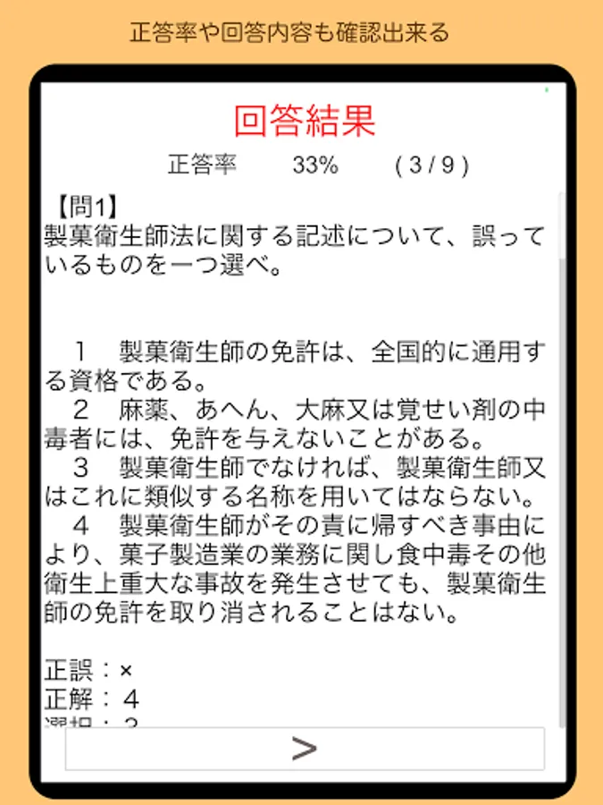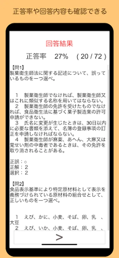 ■ "Random 10 questions" shuffles from all the questions of the Kansai Wide Area Union Confectionery Hygiene Examination from 2018 to 2021 and asks 10 questions. Easy test in a short time