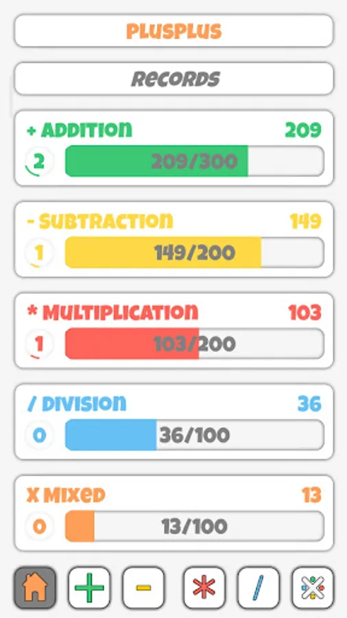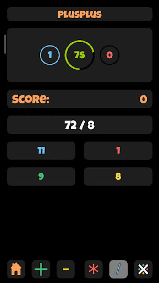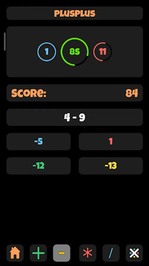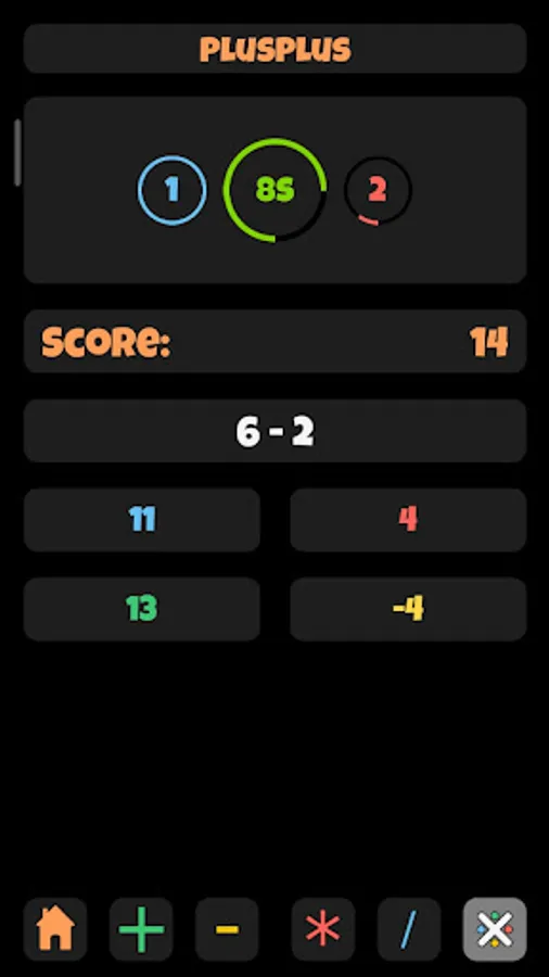 Plus Plus is an application where you can check your arithmetic skills and set new records on time.