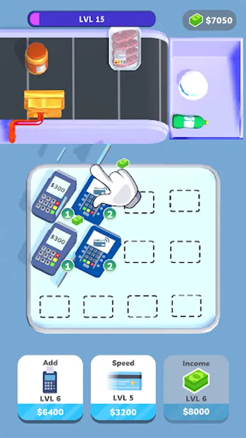 Build up your payment strategy and sell as much products as you can. Merge the pos machines, buy upgrades and go through new levels. New product categories will appear in each level. Become the best super market ever!