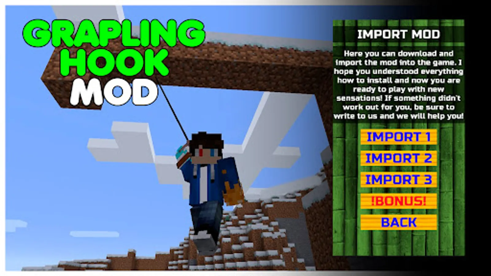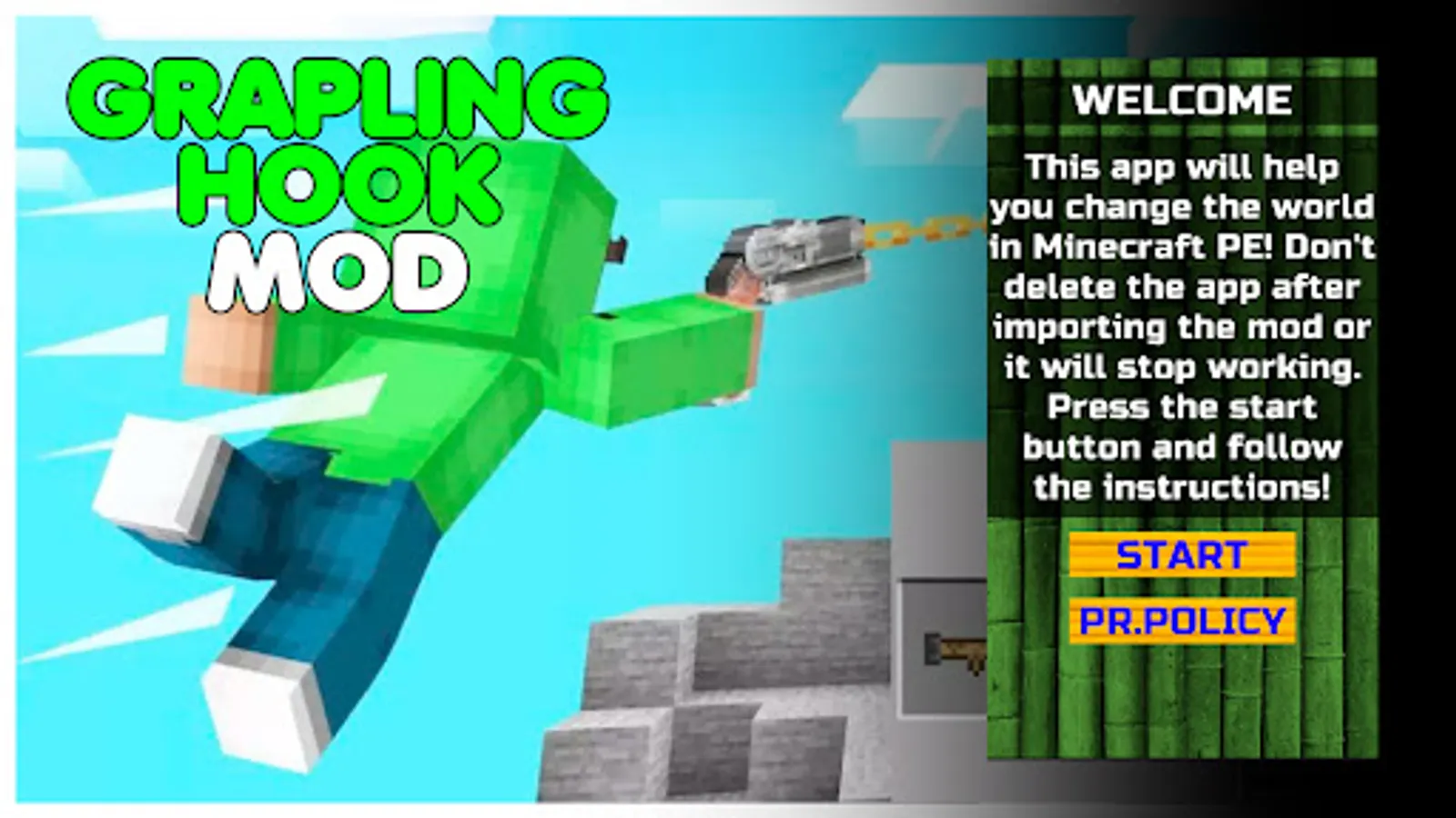 β€π₯π²Grapling Hook Mod for Minecraft PEπ² this is the best application that helps to import any mod and addon into the MCPE game without problems.π₯β€