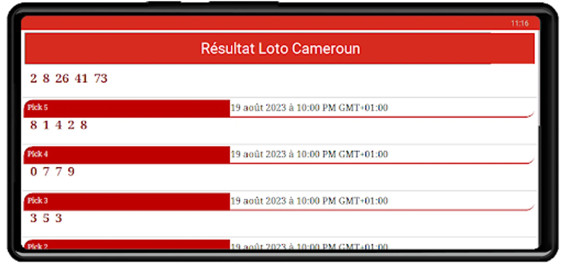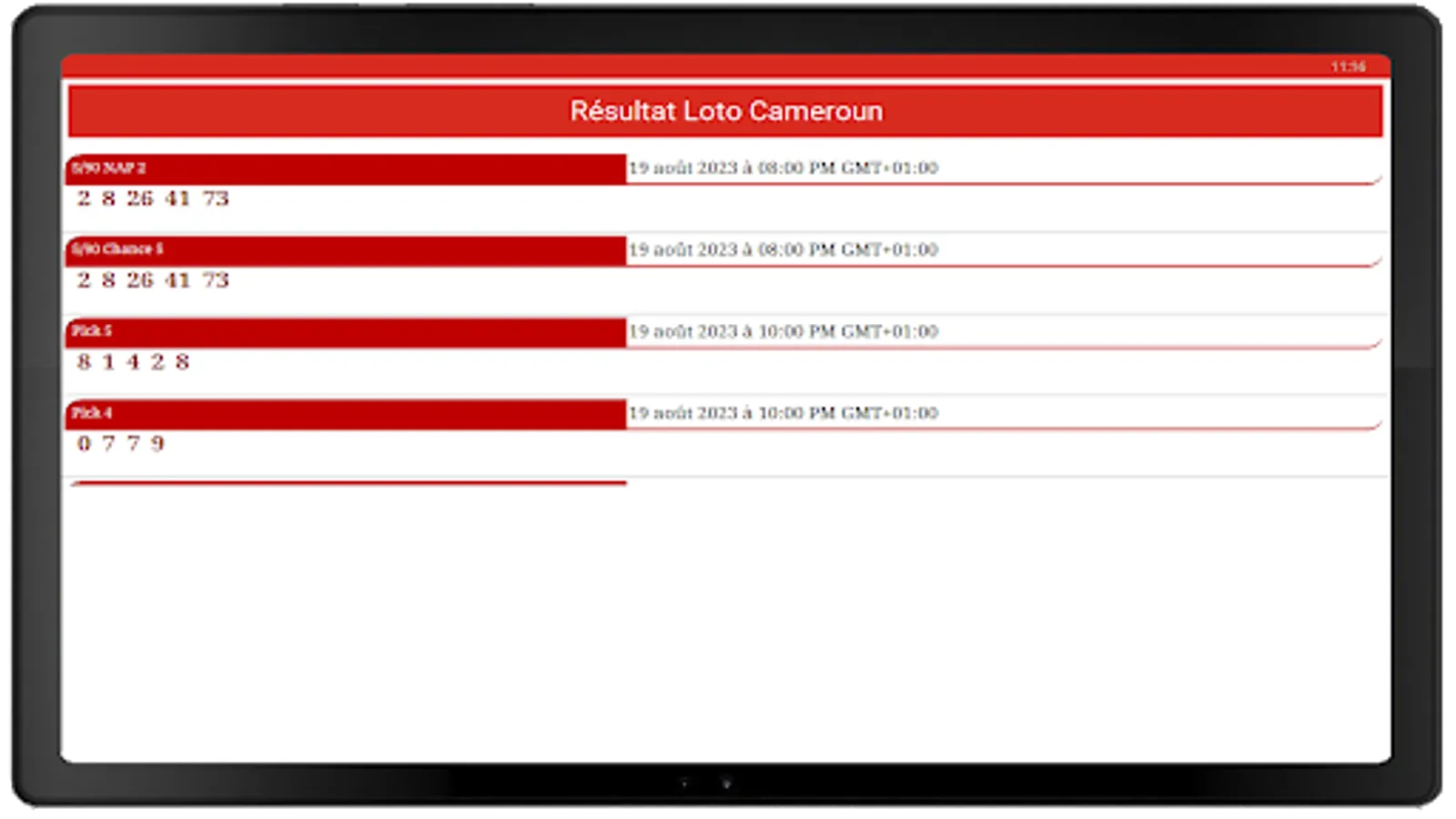 Application designed to give you the results of the draws of the Cameroon lotto races.