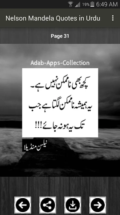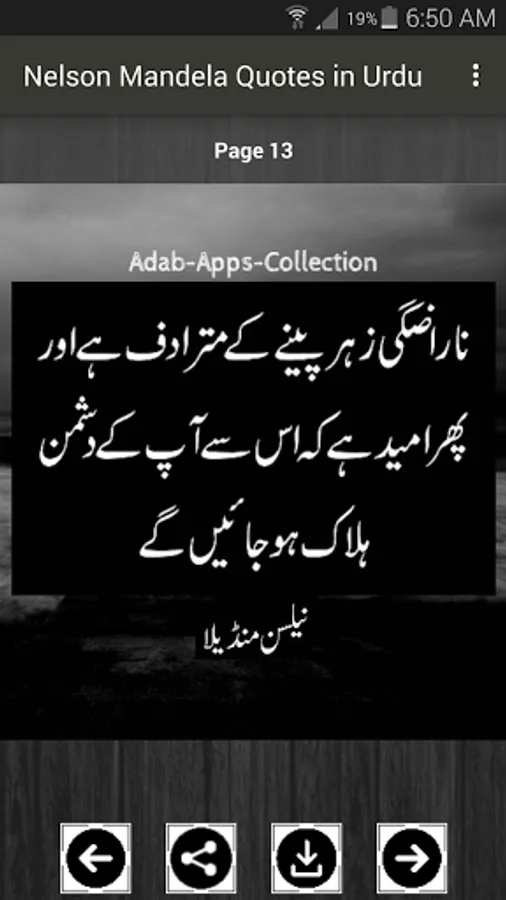 This App Contains Quotes of Nelson Mandela in Urdu Content of this app is in Urdu so it is easy to read for people who understand Urdu.