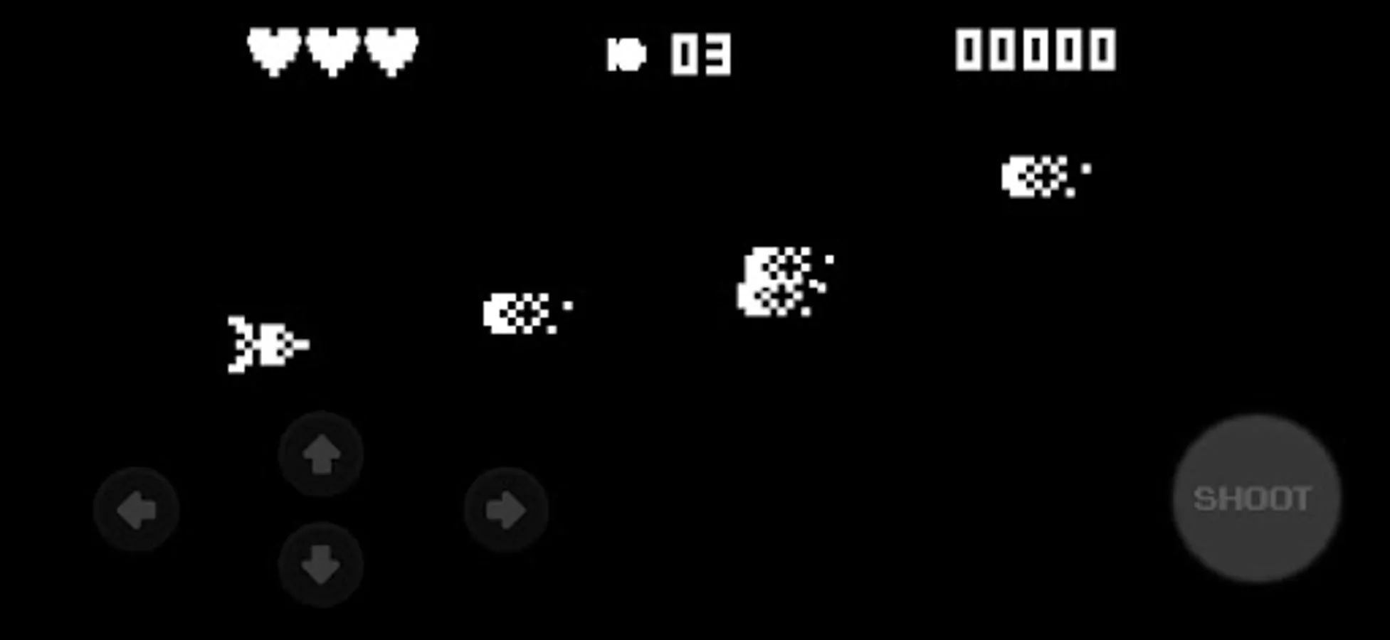 Space Impact is a shooting up game and the player has the ability to freely move horizontally and vertically (with a few exceptions on some platform-like levels in Space Impact) but cannot increase the speed of the screen's auto-scrolling feature. The player can collect power-ups throughout the levels, which award extra lives or special weapons.