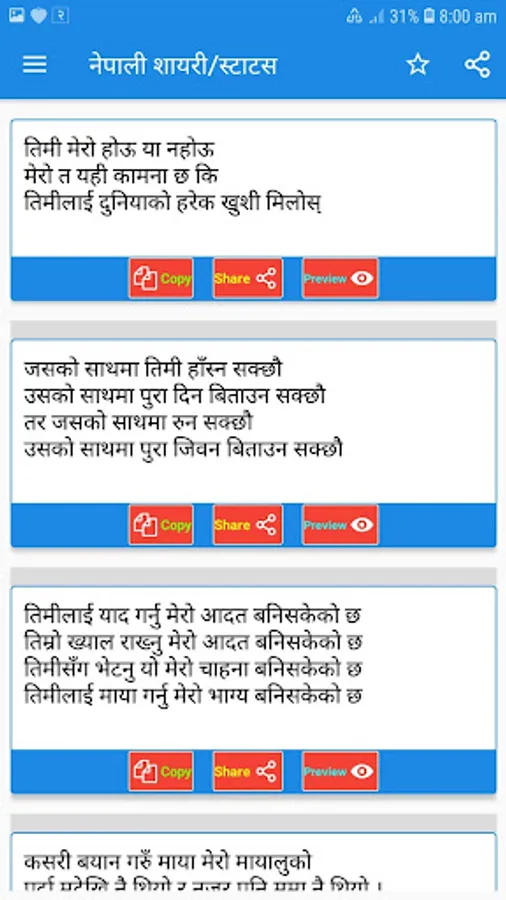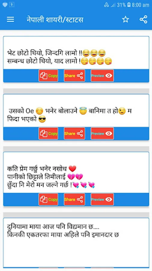 This is best user app for Nepali Love Shayari and Sad Shayari . By using this app get latest Nepali Love Shayari - Nepali Sad Shayari 2020.
