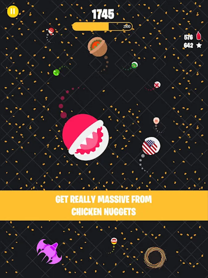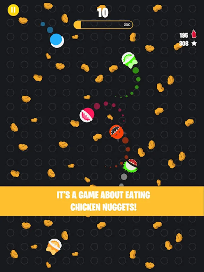 Control your hangry boi and eat chicken nuggets to grow larger. You can even eat other chicken nugget monsters to grow even bigger! But watch out: players bigger than you will be trying to make you their chicken nugget as well. Survive and eat long enough to become the biggest chicken nugget champion in the game!