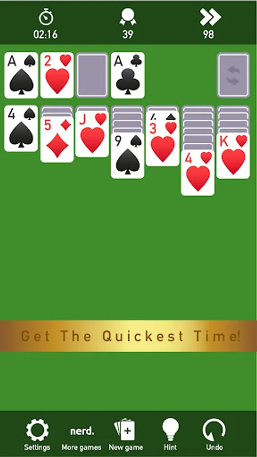 Simple, quick Solitaire game designed for train journeys and quick sessions.