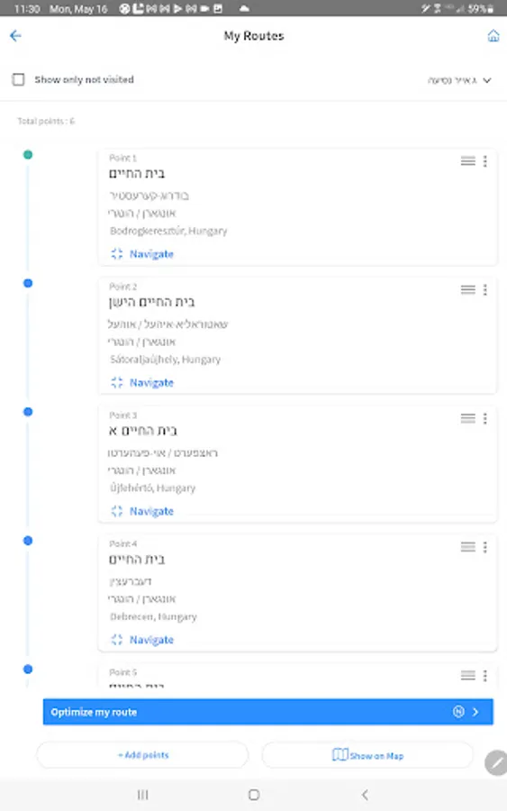 Our in-app algorithm allows travelers to select a route directly from our list, and ensures efficient travel plans. Routes will include everything you need to know in order to have a successful journey. We'll provide you with information regarding airports, hotels, and car rentals, as well as the actual route directions and information. Once you have selected a route, we made it possible for you to then transfer this selection to your GPS maps system and access this information in-app, even when offline on location.