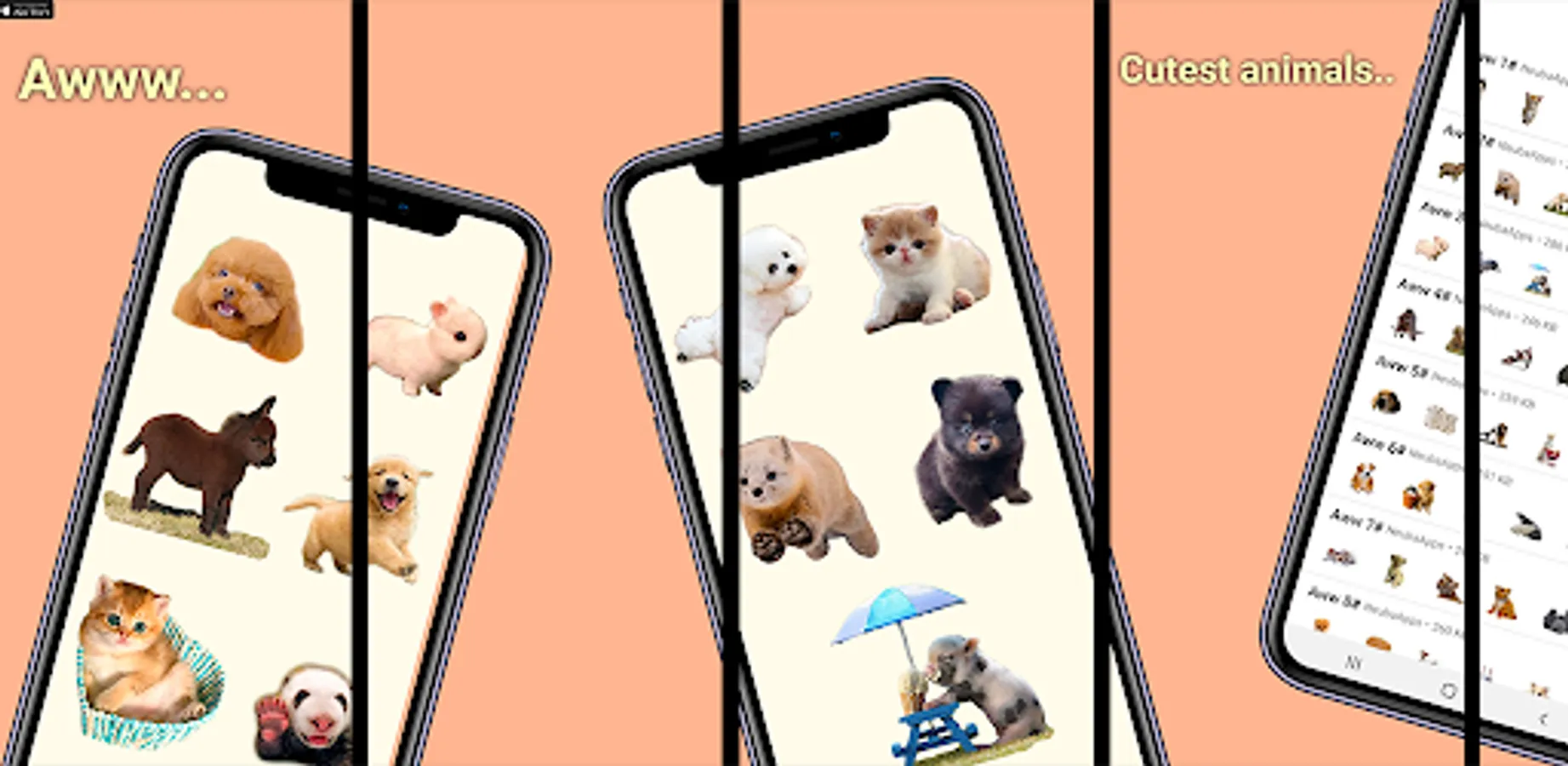 Stickers Aww contains hundreds of cute animals to share with your friends on WhatsApp