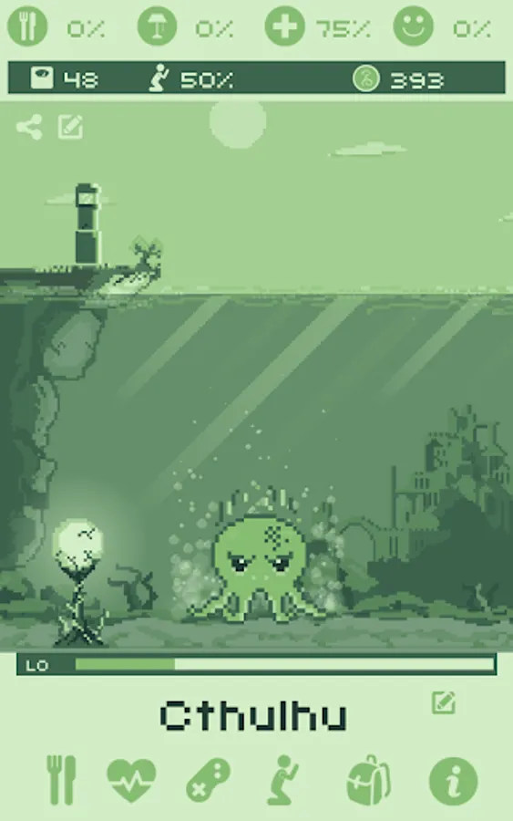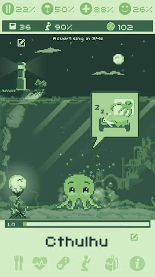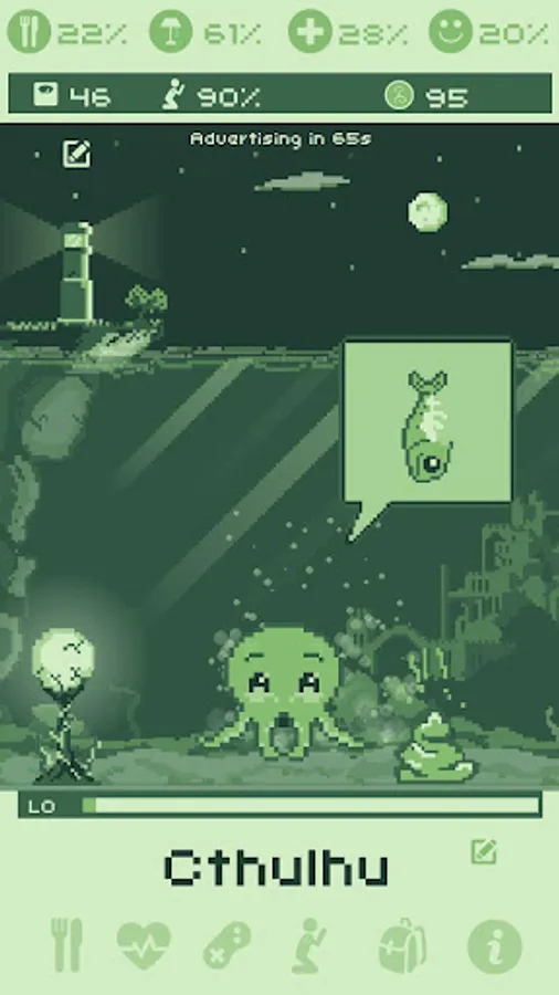 Gain points in any of the five great mini games, and use them to keep Cthulhu happy, healthy, and well fed. Name your Cthulhu, turn out their light for bedtime, and wake them up to feast!