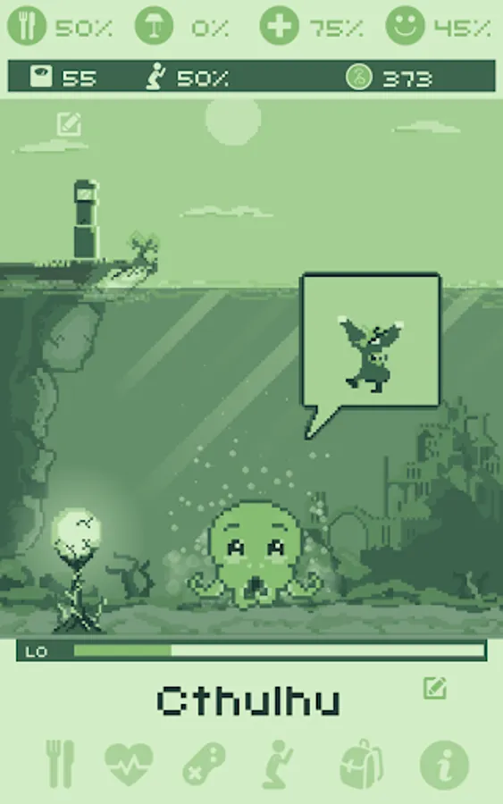 In this virtual pet game you help Cthulu evolve from infancy through adulthood from the comfort of your pocket!