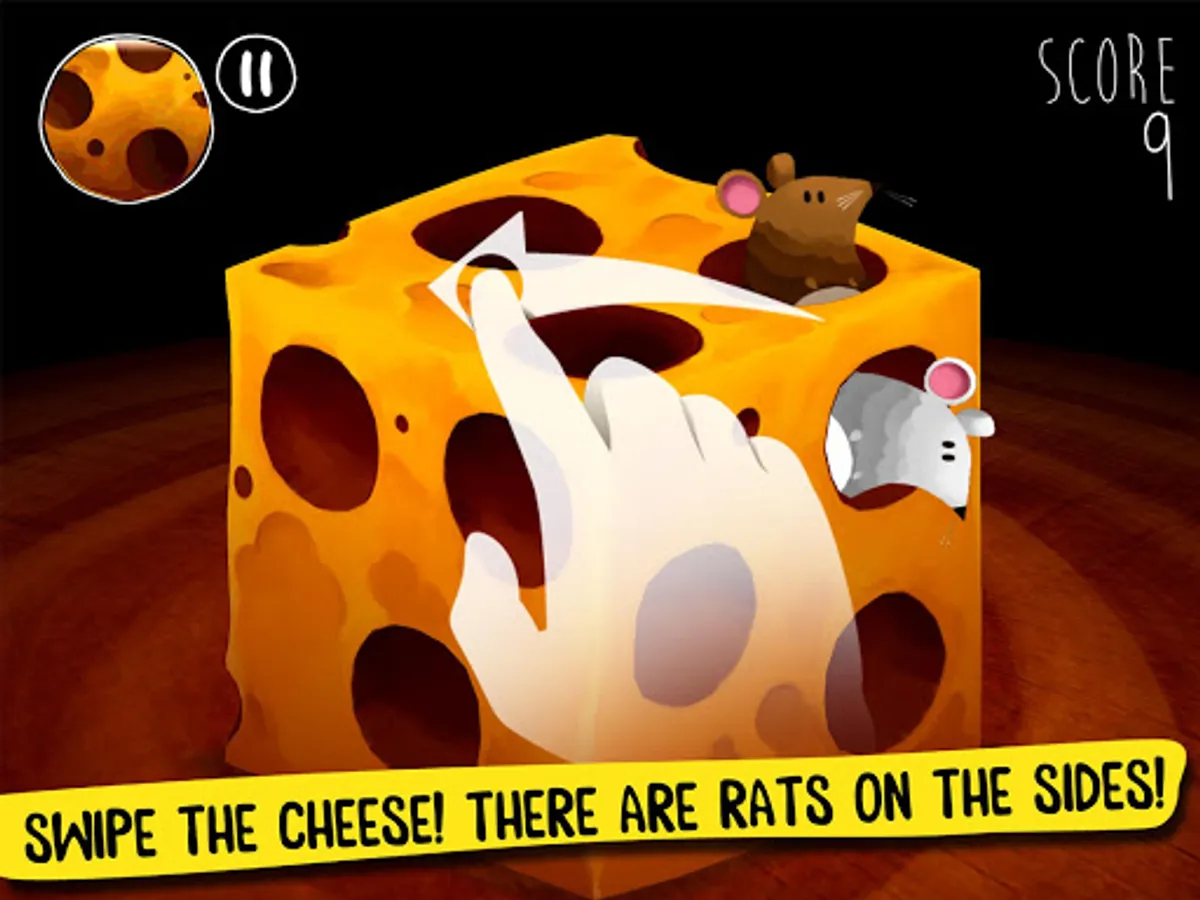 These cute but annoying rats will eat your cheese if you don't hit them right on their heads. Tap on them and swipe the cheese so you can hit all the rats on each side.