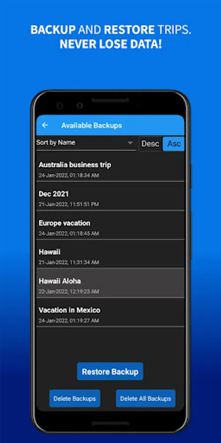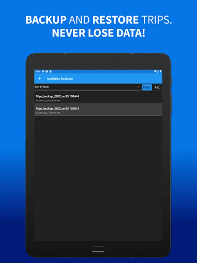 You can make backups your trips and expenses information and restore them whenever you want. Backup and restore is a breeze in this app.