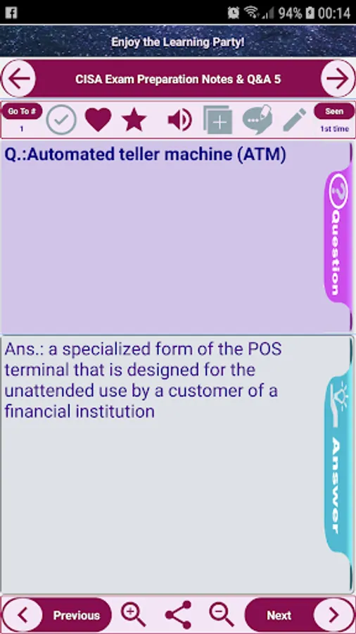 - Enjoy five study Modes (learning mode, handout mode, test mode, slideshow mode and random mode).