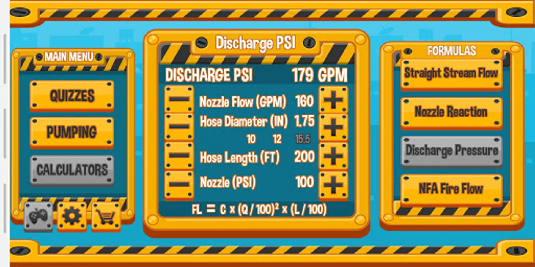 - Fire Calculators: GPM, Nozzle Reaction, Discharge Pressure, NFA Fire Flow