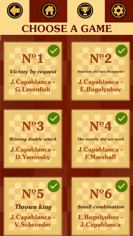 You have to study 50 commented games of the third World Chess Champion - Jose Raul Capablanca. In each game, there will be tasks where it is necessary to find a move or the whole variation of the great Maestro, "to play like Capablanca".