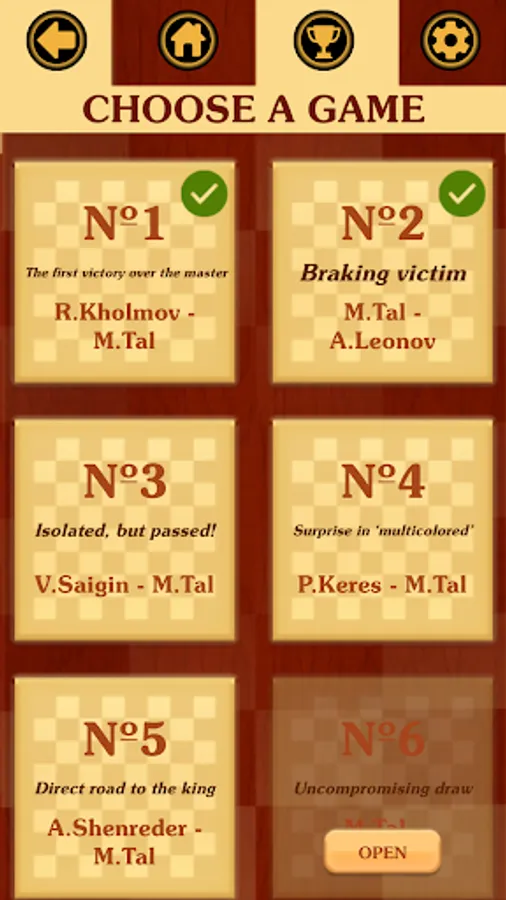 You have to study 50 commented games of the eighth World Chess Champion - Mikhail Tal. In each game, there will be tasks where it is necessary to find a move or the whole variation of the great Maestro, "to play like Tal".