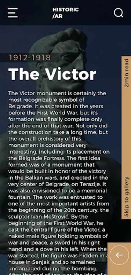 HistoricAR is, essentially, a pocket tourist guide which uses artificial intelligence to recognise monuments of cultural and historical importance and thus giving the user valuable insight of what they're actually looking. Some sites will also let user experience those monuments through the prism of augmented reality(AR).