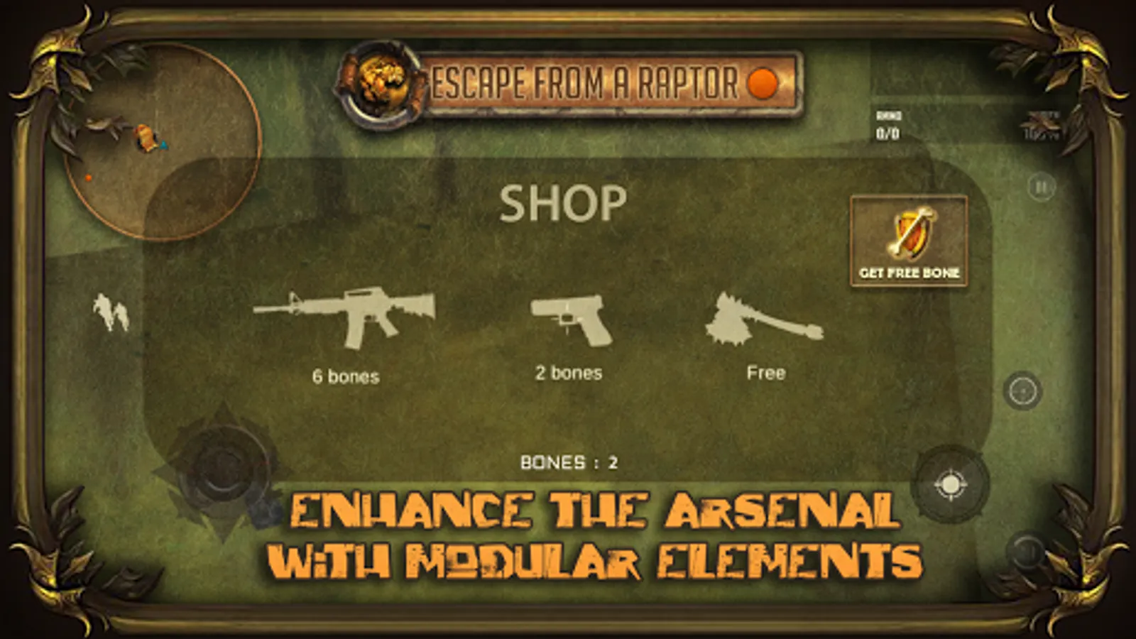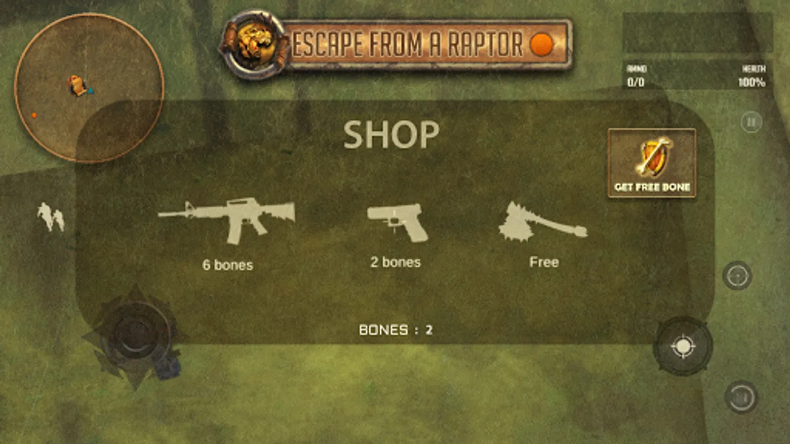 -BUY WEAPONS : the currency for this game is bones , so kill some dinosaurs , get the bones and buy new weapons from the shop that you find in the map.