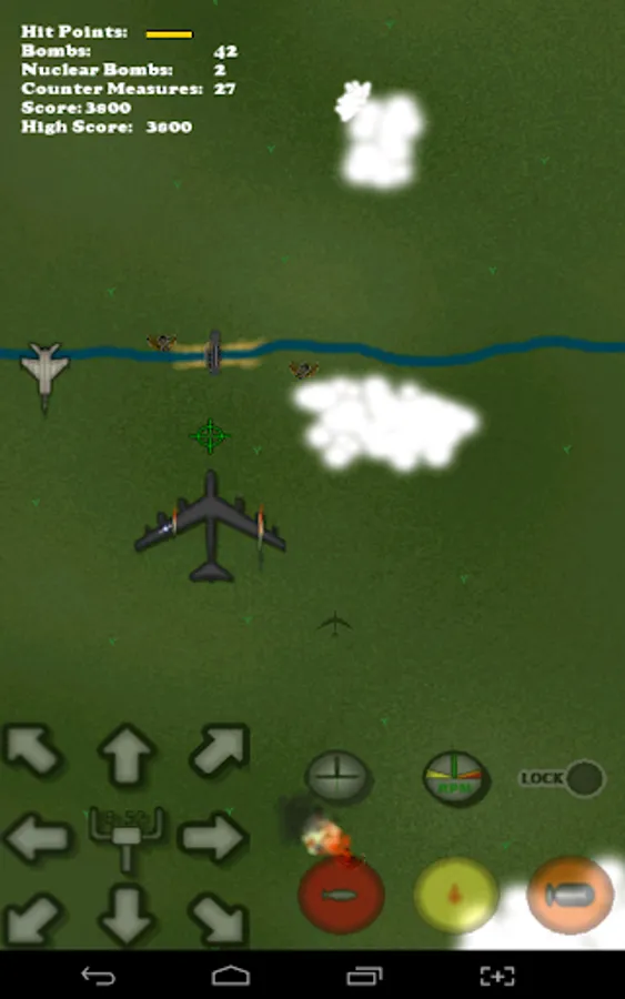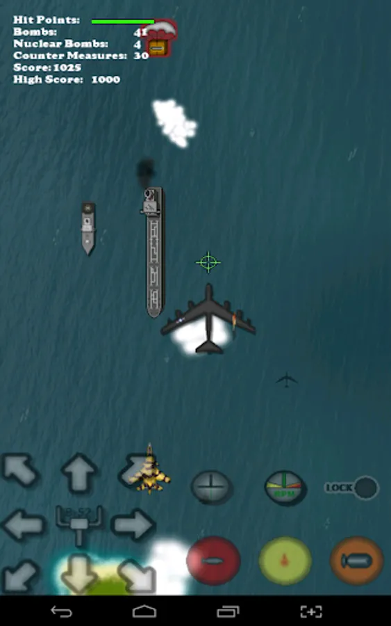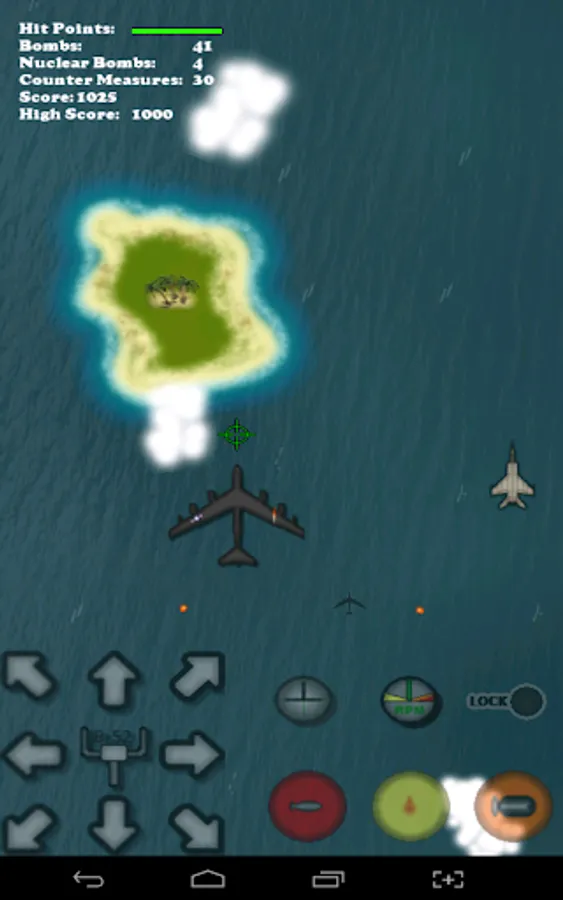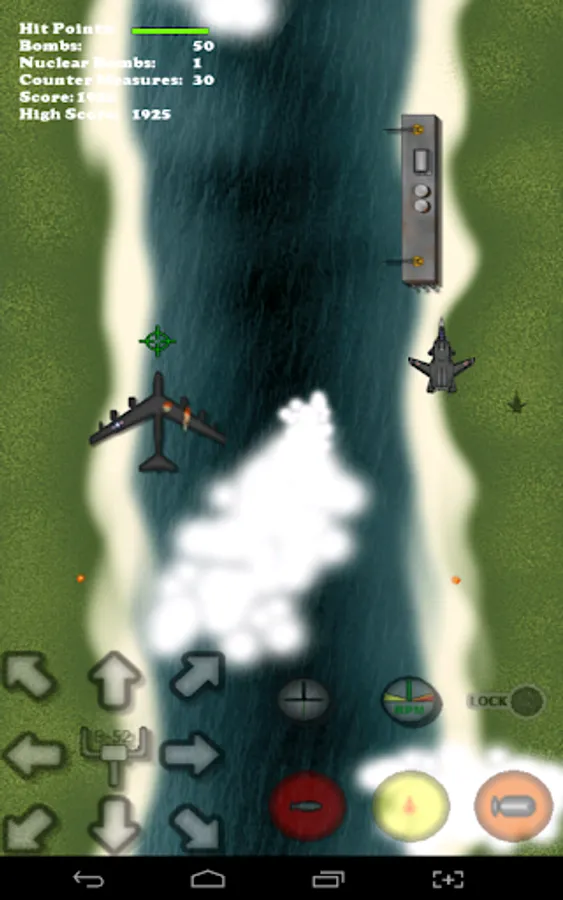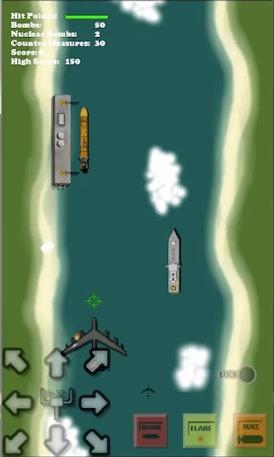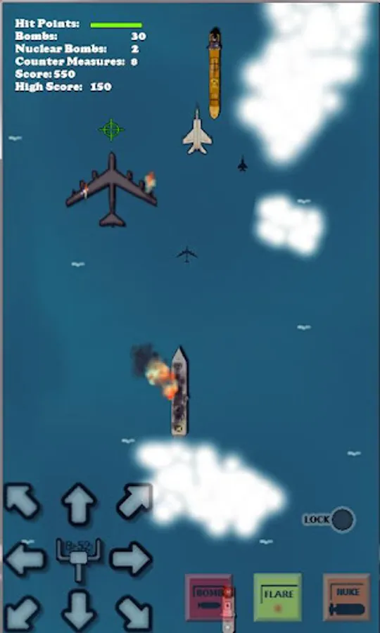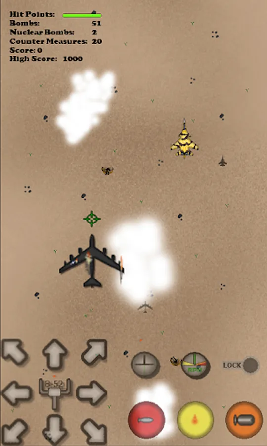 Bomb multiple targets including chemical plants, tanks, ships. Watch for enemy fighter jets, incoming missiles, and flak, use countermeasures such as flares to deviate the missiles off course. Attack flak guns to stop them from firing on you or save your bombs for more significant targets? Drop a nuke and risk destroying your own plane? These decisions are yours!