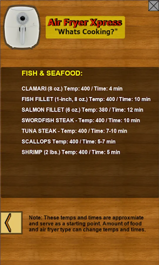 Are you tired of trying to remember what temp and time to cook foods in your air fryer? Worry no more! Use this simple but useful app for quickly referencing temps and times of several popular air fryer foods. Also includes a section for top air fryer tips! This app will be expanded upon if there is demand. No in-app purchases or anything else to buy in this app so happy cooking!
