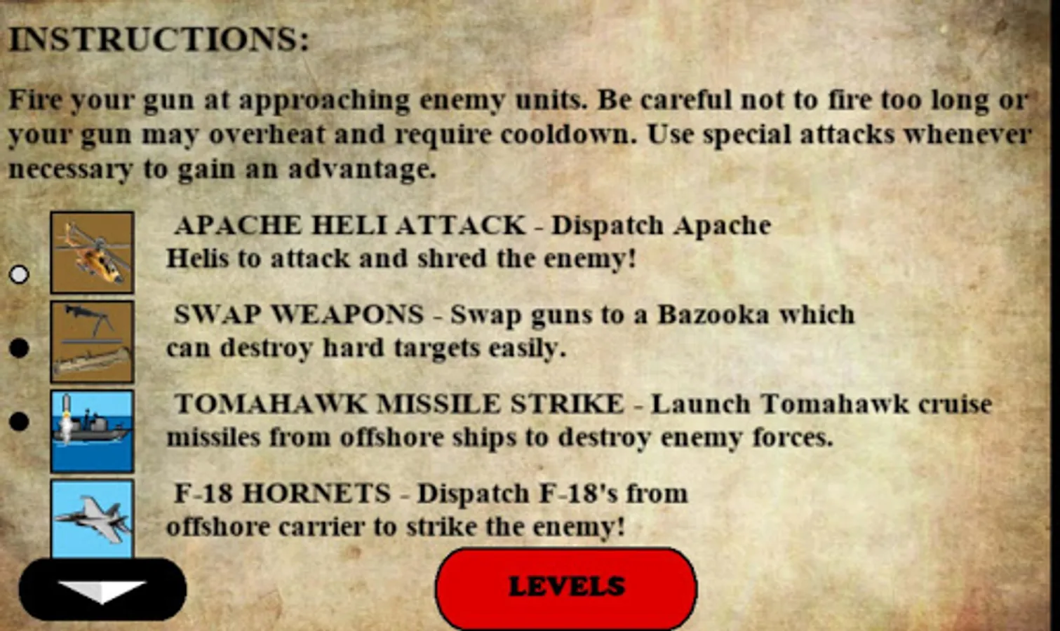 • Fire on multiple enemies such as troops, jeeps, trucks, apc's and tanks!
