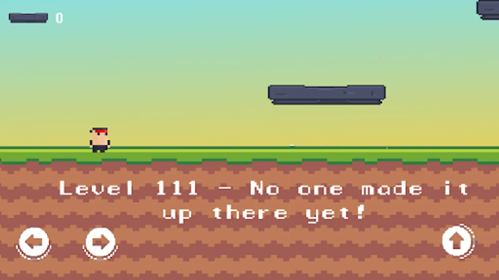 111 floating tiles, going up and up... Some of them are moving, some of them are disappearing and some has enemies who tries to push you down.