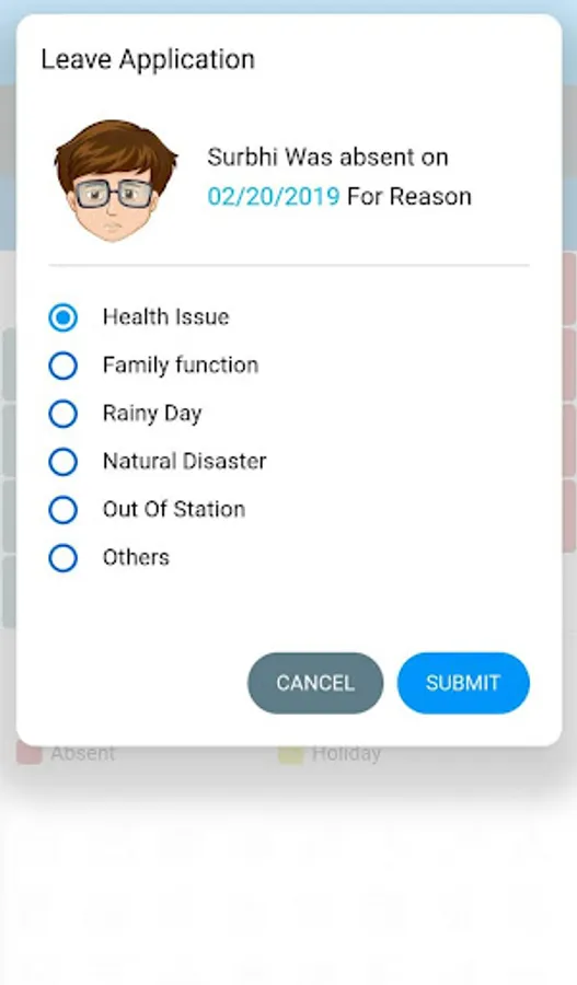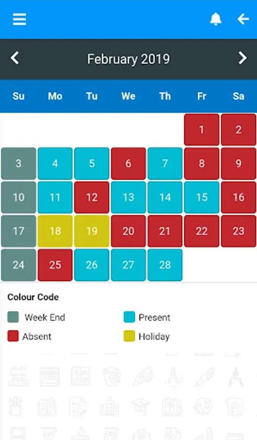 • School Calendar - Parents can plan the vacations and get overview of the schools activities. Access your school's calendar from attendance view and be updated on various perspectives: Academic, examination, festivals, cultural, religious, etc (as defined by the school)