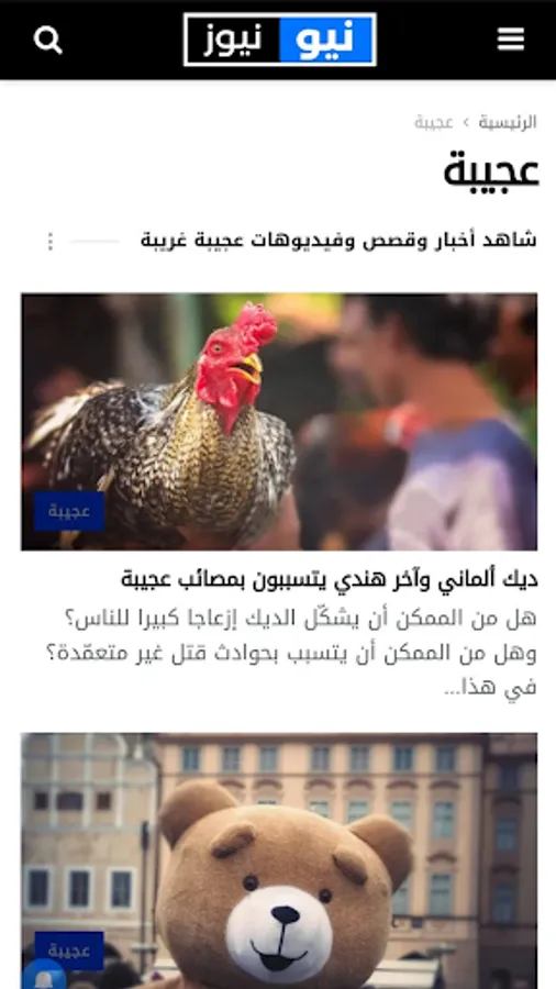 Enjoy reading the latest new news and follow the pulse of breaking news in Arabic on your phone in one of the following news topics: Arab news, around the world - global news, your health - health news, your car - car news, sports news, football news, technology news, business - Business and finance news, amazing news, watch a video - watch the video, the latest news, today's photo - see with pictures the latest news, words - various cultural articles all through the New News news application