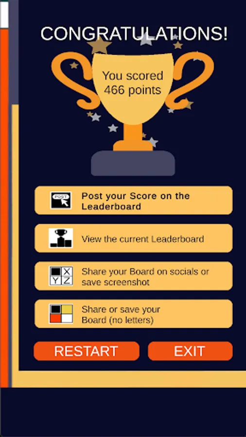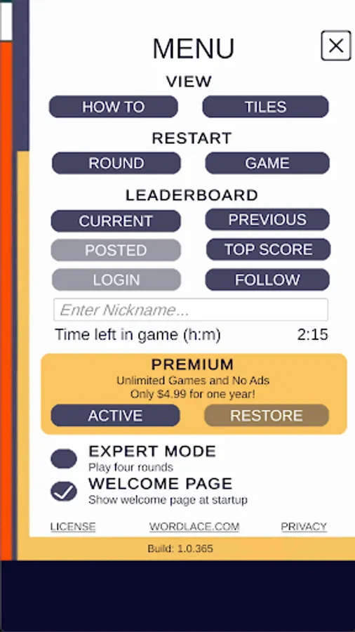 You can play Wordlace by yourself or social-play it with one or more friends as a fun daily challenge by sharing your board (with or without letters to make it more interesting). You can also play Wordlace with a larger number of people you decide to follow, a feature you will find in the Menu Page, or play against the whole English-speaking world to see how you fare. Again, it is all up to you!