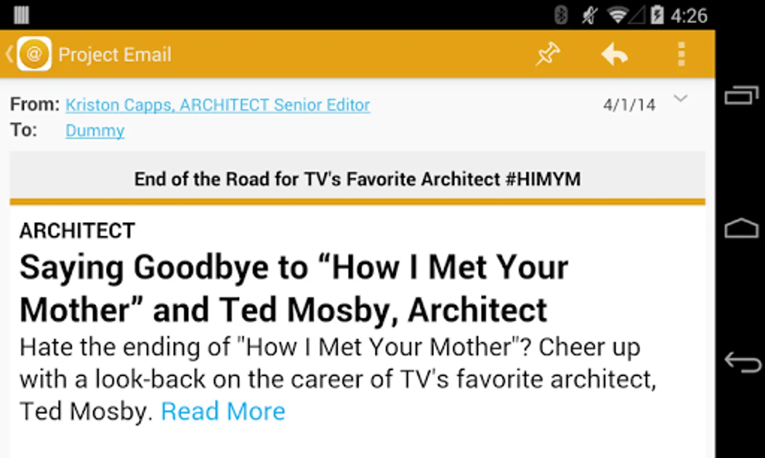 Newforma® Project Email App for Android provides instant access to your project email from the convenience of your Android smartphone. With just a couple taps, all of your Newforma Project Center project email is at your fingertips ready for searching, viewing and further action.