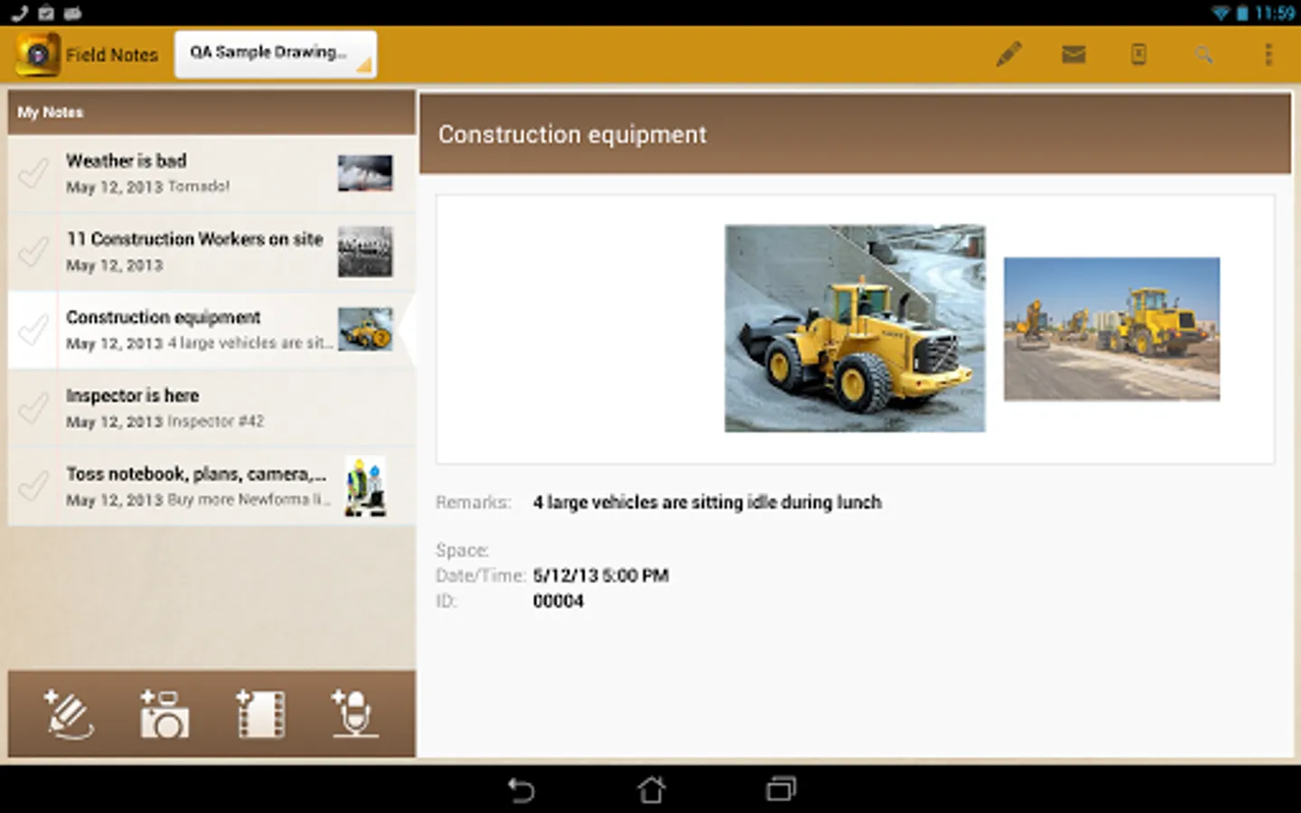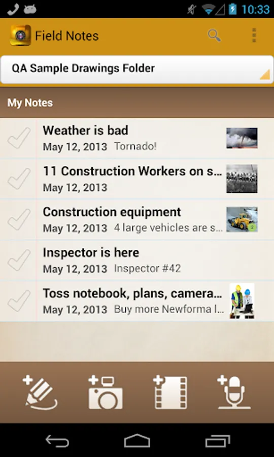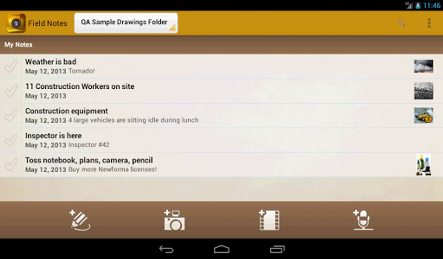 A picture (or video or audio) is worth 1,000 words. The Newforma® Field Notes app on your smartphone and tablet means you’re always ready to capture notes supplemented by audio, video and still photos.