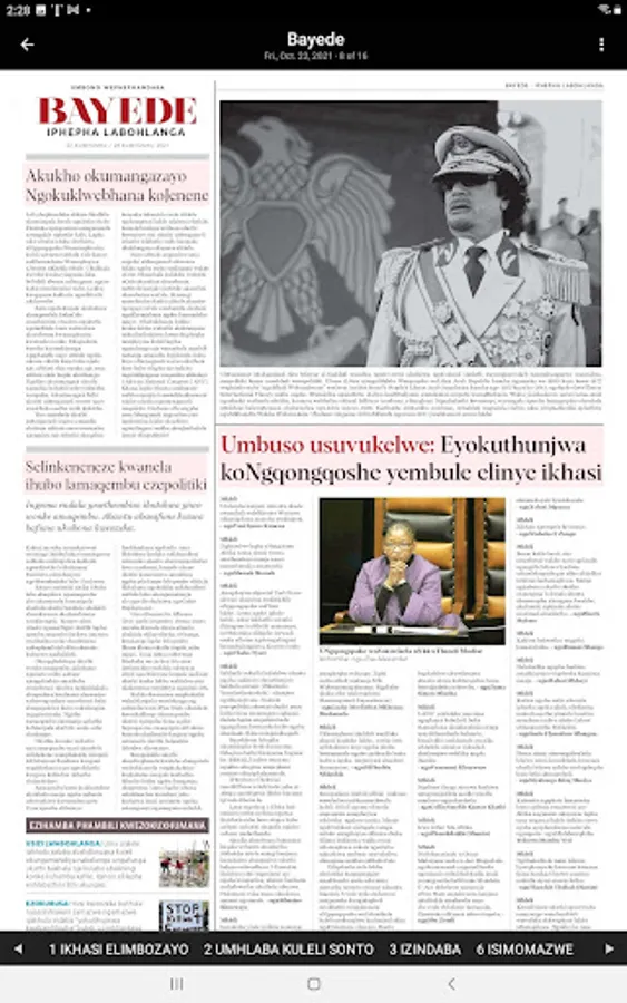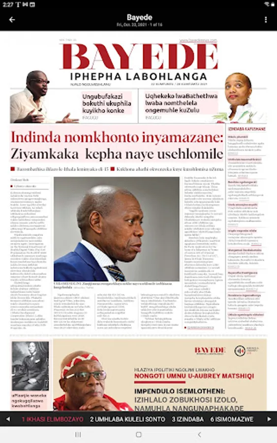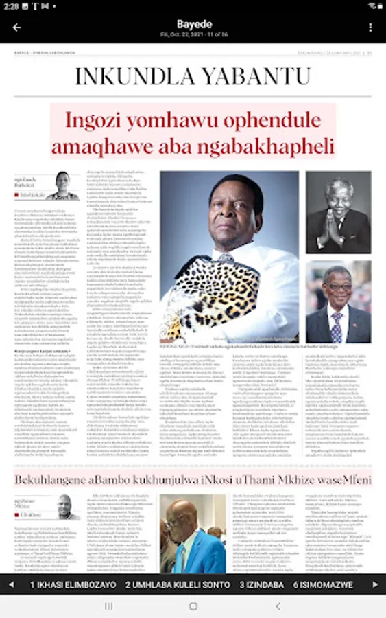 Every Friday, Bayede News reaches an influential, isiNguni speaking audience, delivering the latest in news, politics and political economy, business and finance, technology, lifestyle, arts, cultural heritage, Chapter 9 Institutions, court reports, and sport. While continental in scope, our coverage also delivers strong international perspectives.