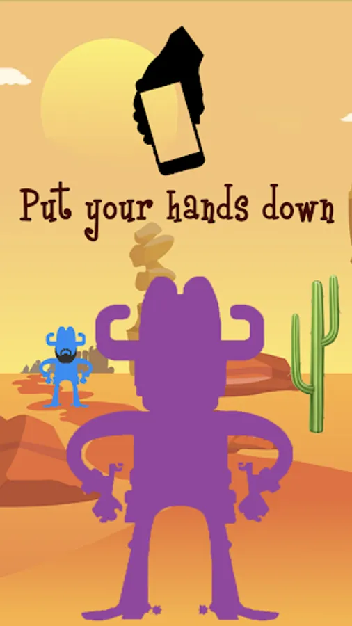 Duel with Wester Gun Duel. Choose your character's color. Put on your mustache. Connect with your friend. Load your gun and here you are ready for a duel. Stand up and your phone becomes a weapon. Put your gun down and the duel has begun. Listen to your heart rhythm. Be the first to pull your gun when you hear the bell. Here you have everything to be the perfect cowboy.
