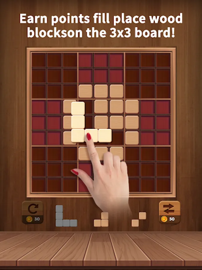 • Also, Earn points fill place wood blocks on the 3x3 board!