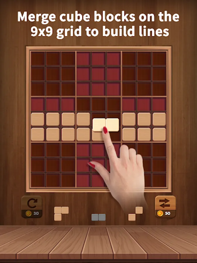Drag and drop blocks into the 9×9 board and fill the blocks with a row or fill 3x3 board to earn points! Enjoy classic block puzzles!
