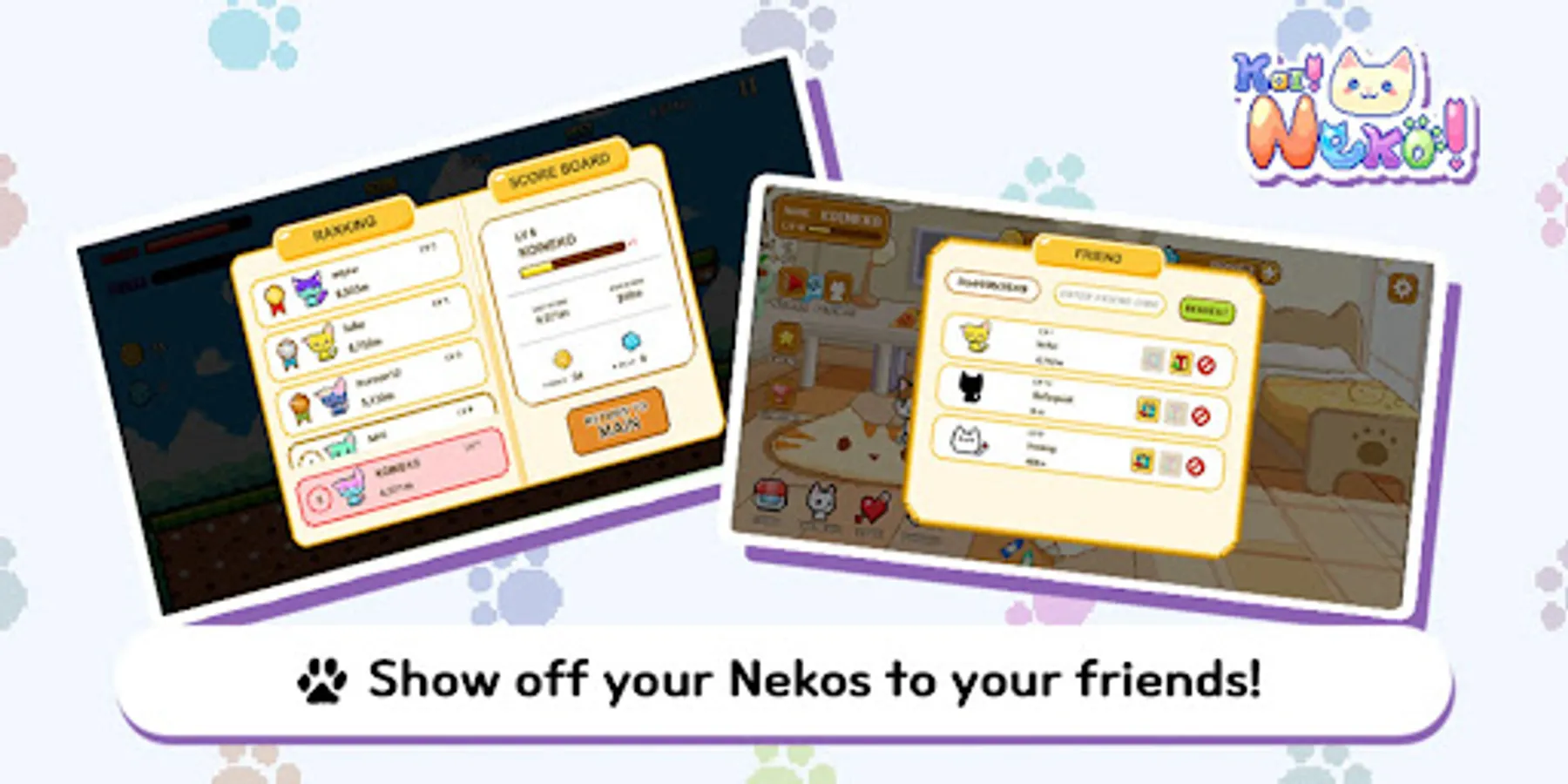 Show your friends the bond between you and Koineko! Because your Koineko is more adorable than anyone else's Koineko. Send and receive gifts with your friends! Your friends are just as precious as Koinekos.