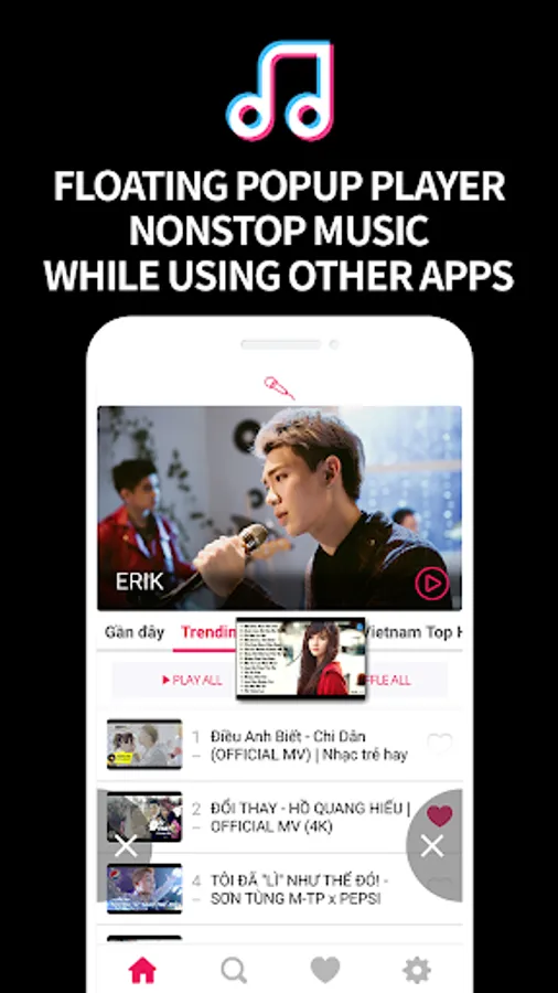 Vietnamese Pop Music is a compliant 3rd-party app that lets you play Vietnamese pop music and videos from YouTube. Starting from the 2000s both domestic and overseas Vietnamese pop artists became popular, and in the 2010s new artists easily gained attention with the help of the internet. Current Vietnamese pop mostly mixes elements from Western and Eastern regions, borrowing from styles such as Adult Contemporary, Dance-Pop, Contemporary R&B, Pop Rock, Electronic Dance Music, Vietnamese Folk Music, Nhạc vàng, and Vietnamese Bolero. In Vietnam, domestic pop from the country is called Nhạc trẻ, but overseas, names like Vietnamese pop or V-Pop are more common.
