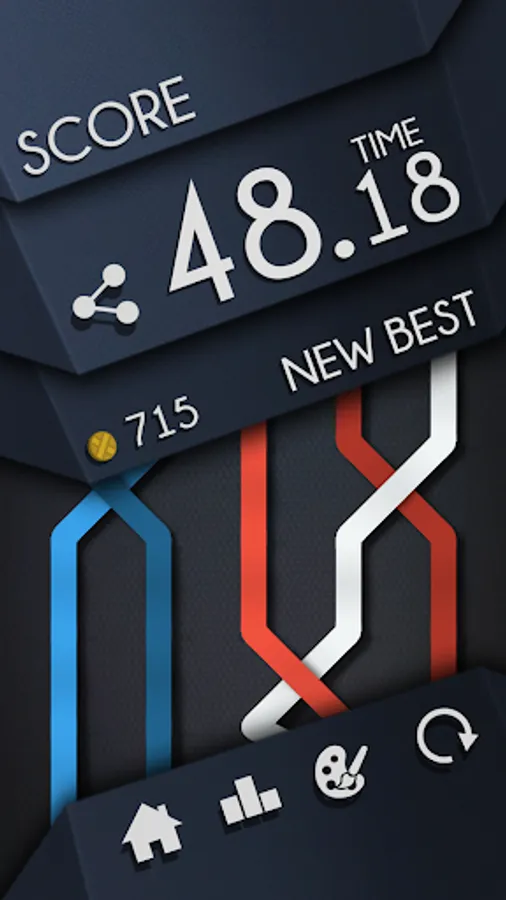 The game core is very easy: a simple touch between two strings to swap them, don’t let any knots reach the spikes. It seems trivial, but I assure you that it will push both your reflexes and analytical skills to their limit!