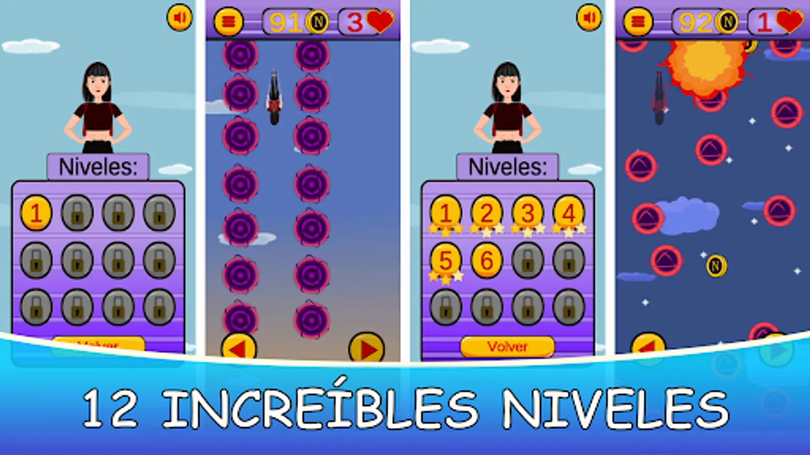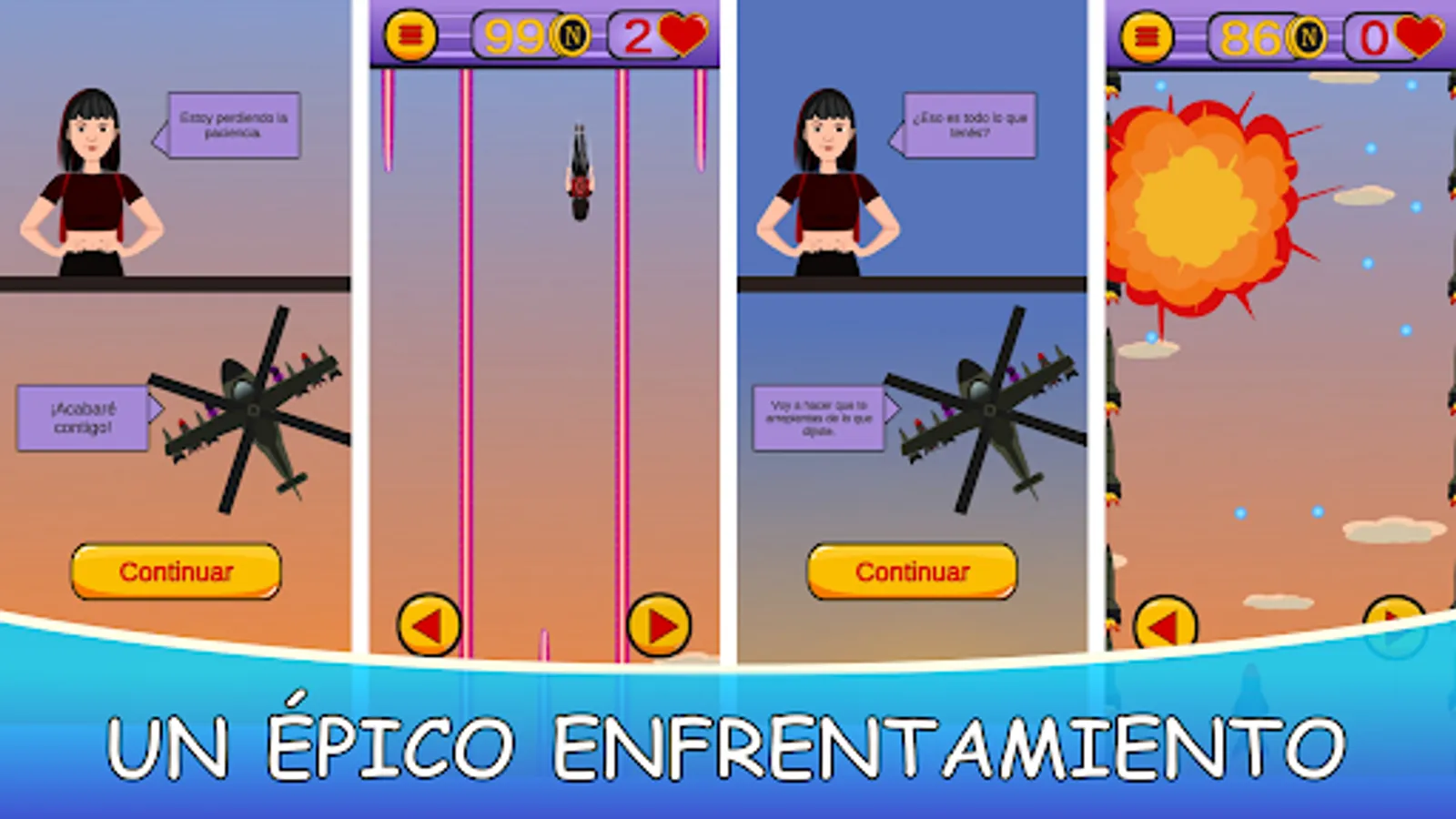 You will live a great challenge by putting yourself in the shoes of Nina, a girl who fights crime. Nina's plane was hit by a missile; now she must jump with her parachute and dodge the different attacks of a war helicopter to save her life.