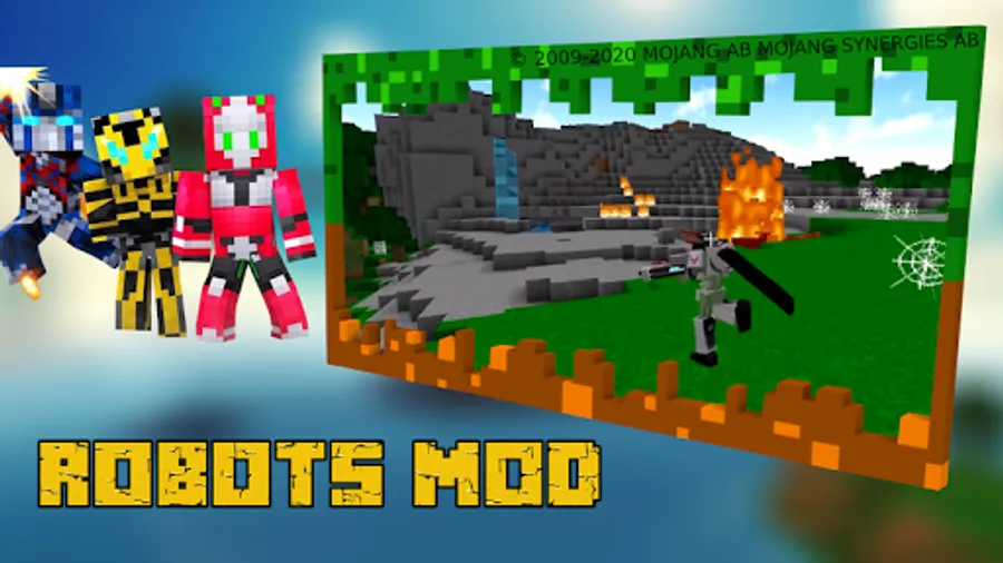 Robot mod is a transformer with powerful armor in conjunction with the strongest weapons, it’s like you become Tony Stark, but the owner of not one suit, but more than ten at once, but one thing: you can wear only one armor. The only thing you need to know is that the kit will not appear by itself, it must be crafted. For crafting, you need raw crystals and thanks to the energy process you will turn powerful fuel. It is also a pleasant way to recall a beautiful cartoon with the participation of transformers, in addition to armor like an iron man (for defense and attack). You can move as fast as on a car, because the robot is able to turn into a war machine that can attack monsters. You will also get the opportunity to turn into a plane and fly above the clouds. But for balance, we added enemy robo-warriors who are also quite strong and will not let you run quietly. But for such battles there are special robots that can transform into a tank! The ability to attack with fire and powerful plasma guns - all this is available after equipping iron armor. You have the opportunity to get into the future and arrange robo wars with your friends.