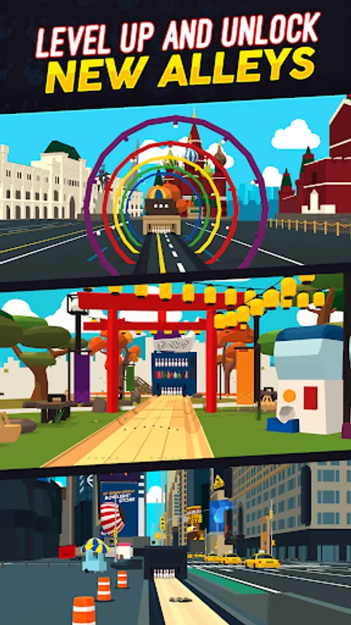 Bowl in beautiful 3D bowling alleys from around the world and collect balls from the locations you visit.
